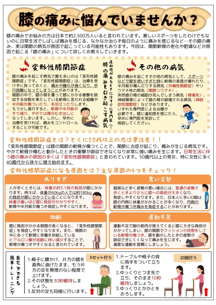 今回は、「膝の痛み」について、ご紹介します。