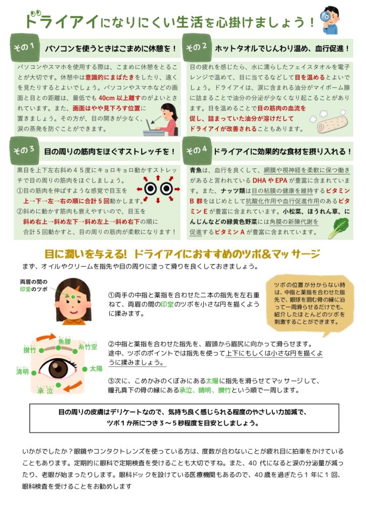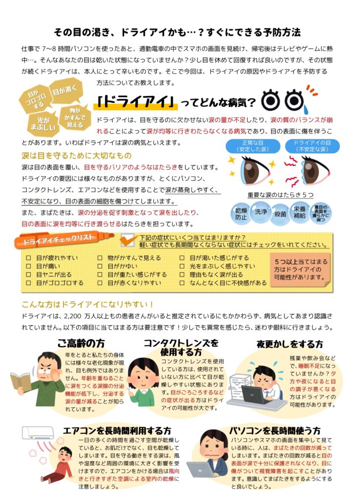 今回は、ドライアイの原因や予防法についても載せていますので、ぜひ、ご参考にされてください☆