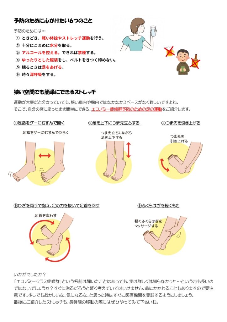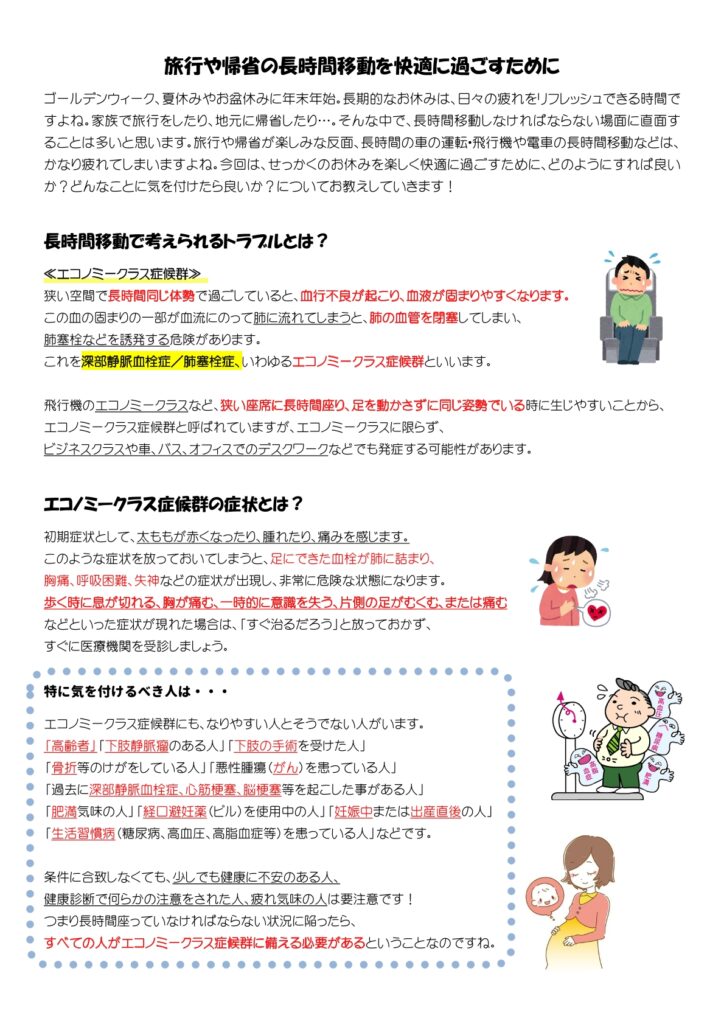 今回は、「エコノミークラス症候群」の症状や、座ったままできるストレッチ法なども載せていますので、ぜひ、ご参考にされてください☆