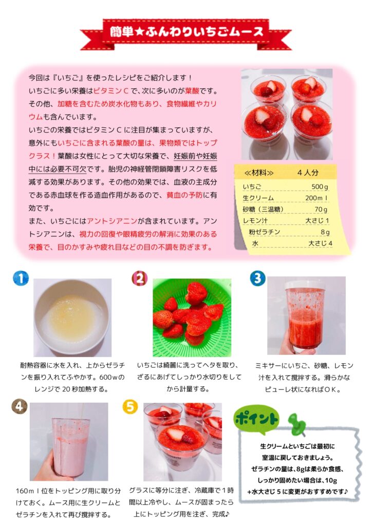 貧血予防や視力の回復などにも効果のある、いちごを使った簡単デザートレシピを、ぜひ、ご活用ください☆