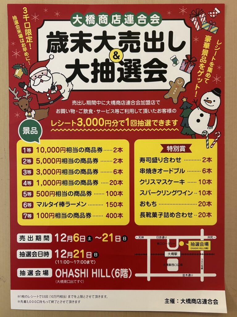 大橋商店連合会「歳末大売出し&大抽選会」開催中です!